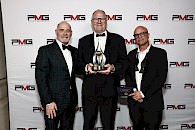 (Photo left to right: MacGuffin Award presenter Writer and Director Matthew Weiner, 891 Props member Dean Eilertson, and 891 Props member Paul Wagner.)