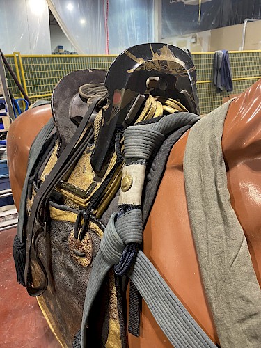 Another story from Shōgun, and this hit me really hard, was we had to get saddles for the samurai. Tomo got in touch with me from a place up past Fukushima at some house belonging to a guy who collects antiques. We were buying through the night, and they had saddles, stirrups, the bits, everything. We get these saddles and start using them in filming and one comes back from set that needed fixing. Well, underneath there was a carving and inscription on the saddle, so I had it translated, and it read: ‘March, Lucky Day, 1634. Name of the maker.’ I'm going like, ‘Oh my God, we are using real antiques from the 1600s on Shōgun!’ It was staggering.