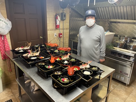 We hired Yutaka Yamamoto, a master chef from Japan. He's retired and lives in BC now. He was willing to take it on. He did his research for the plating and the types of food that would have been served, with two food stylists to help onset. We were ordering food out of Japan, because their fish are only a certain size, whereas in the markets here the fish are too big. We needed crayfish, because that’s what they have in Japan, but here we have lobsters with claws. We were picking up food at the airport and taking it to our master chef in this whole kitchen built for him to prepare food out of. It was quite the operation.
