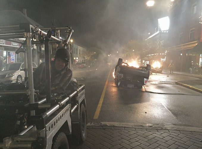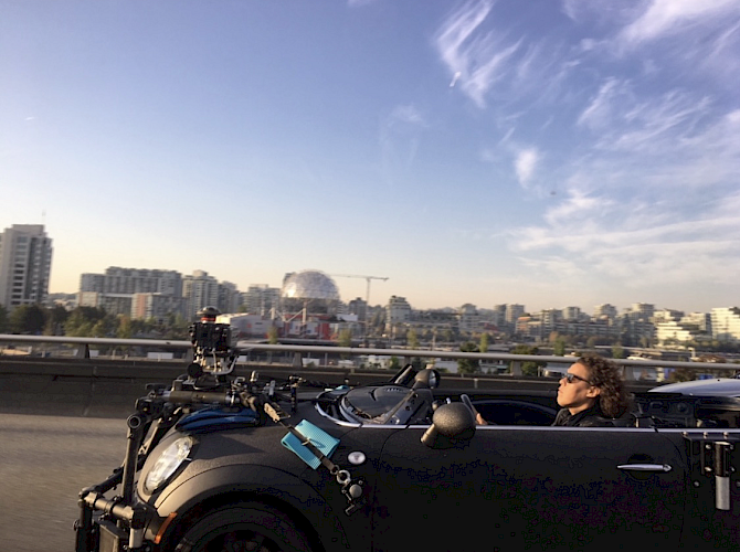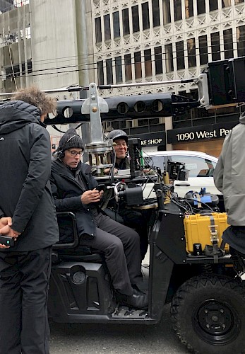 There are some shots on Deadpool 2 that I did. One of my favourites would be when Ryan Reynolds is running down Cambie Street in Vancouver after his character’s girlfriend is murdered. He's running down the street in the rain and the camera is very close behind him. That's me driving! There's no credit for that in the credits, but people know I did it. It was so much fun. There's rain towers dumping and he takes off running in his bodysuit and I'm holding the frame and it's just a moment, but to be able to calm my mind and be able to focus and get that shot feels good. My previous experience in music and deejaying helps. I used to travel all over the world as the deejay for Red Planet (Detroit) and I developed ears that can tune into the sound of a room or different frequencies. On set, I'm watching actors, or horses, or vehicles, or camera marks, or whatever I need to observe with my eyes, but I'm also listening to the sound of the wheels, the tyres, the velocity of what I'm driving. I remember one shot that I did years ago. It was in a warehouse, and they had yellow delineator lines on and these gigantic posts for forklifts and these VFX things flying through the aisles. Driving a camera vehicle with all this smoke atmosphere and lights, I could barely see the yellow marks of the pathway. I knew that if I'm holding the steering wheel straight and just doing what I need to do for the shot, everything is going to be fine, but I was also listening to the sound. Sound becomes important to be able to do things safely.