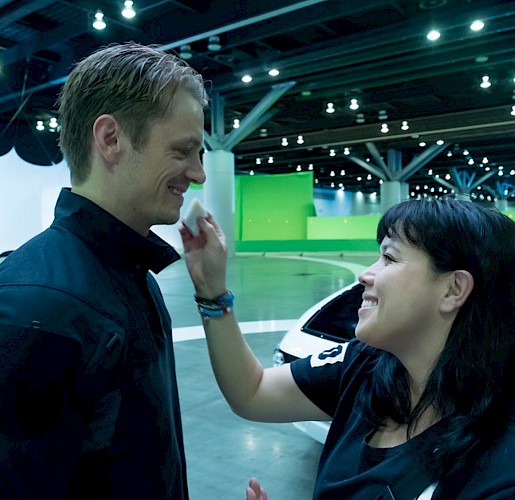 “You help Costumes hold the umbrellas, and they help you cover someone up while you're touching them up. We all work together, and it gets done. There is a moment of extreme pride seeing the final images and that it all worked out. It does make it all worthwhile in the end.”